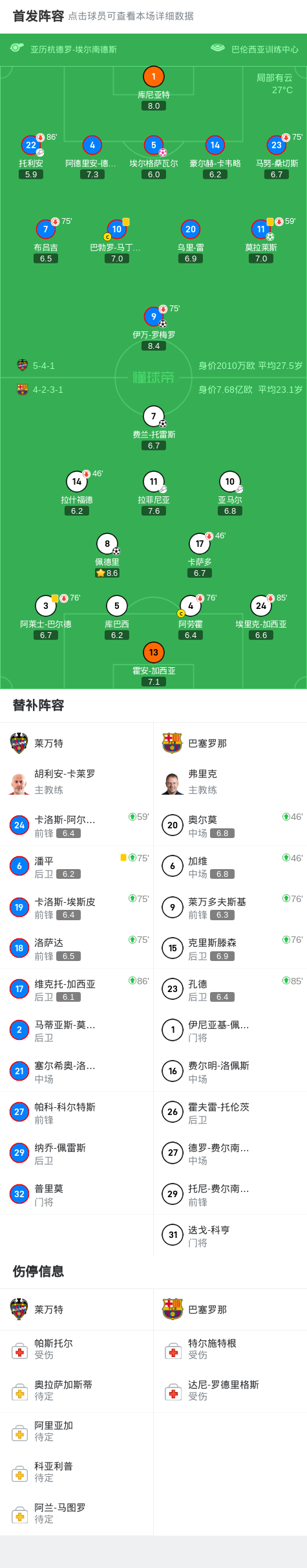 北京时间8月24日,西班牙足球甲级联赛第二轮,莱万特坐镇主场迎战巴塞罗那。上半场,伊万-罗梅罗破门。巴尔德手球送点,莫拉莱斯主罚命中。下半场,佩德里和费兰-托雷斯3分钟内扳平比分。尾声阶段,亚马尔传中,埃尔格萨瓦尔不慎自摆乌龙。全场比赛结束,巴萨让二追三客场3-2逆转击败莱万特。